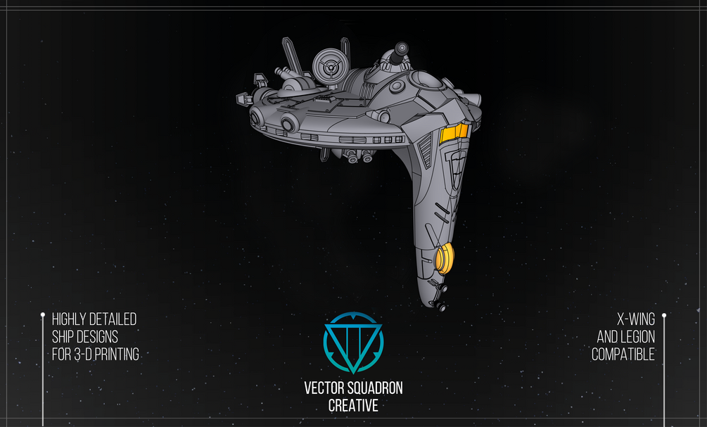 Star Wars inspired Archaeological research vessel scaled for X-Wing, but detailed enough to be printed for Legion.